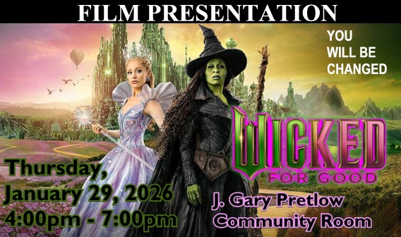 Showing January 29th 2026 at 4:00pm the film Wicked: for good. Based on the award…